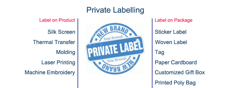 Labels are a key feature of your product. Most buyers who import from China and sell on the Internet or in the local market need to label the products they want to buy. For most categories of products, you can add your own brand (your logo) to the product body or package. We have summarized 11 private labeling methods and my team offers a variety of products to our customers, as shown above.