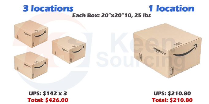 For example, if you send four boxes to four different locations, it would be more expensive to ship the four boxes to one site. You have to spend almost twice the amount to do this.